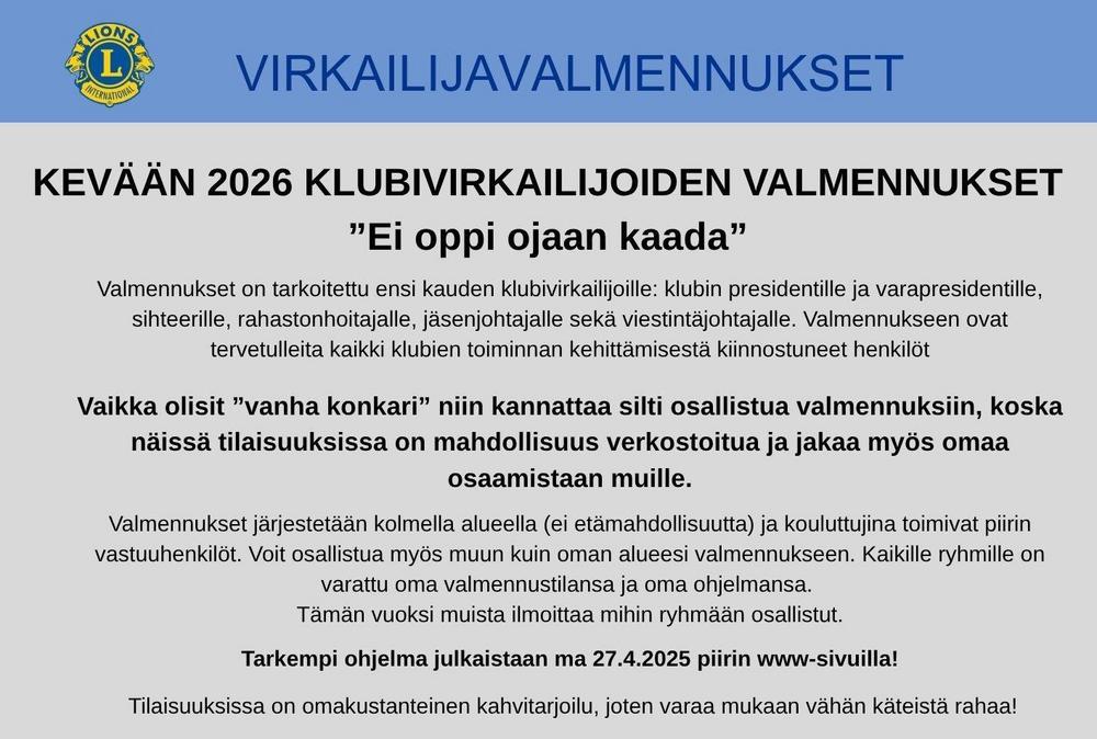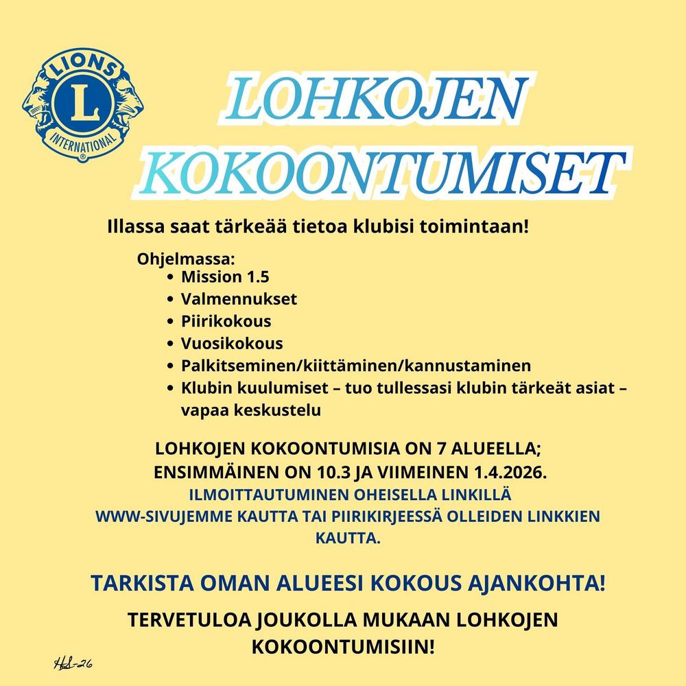 Ohjelmassa: - Mission 1.5 - Valmennukset - Piirikokous - Vuosikokous - Palkitseminen/kiittäminen/kannustaminen - Klubin kuulumiset – tuo tullessasi klubin tärkeät asiat – vapaa keskustelu Alue 1…