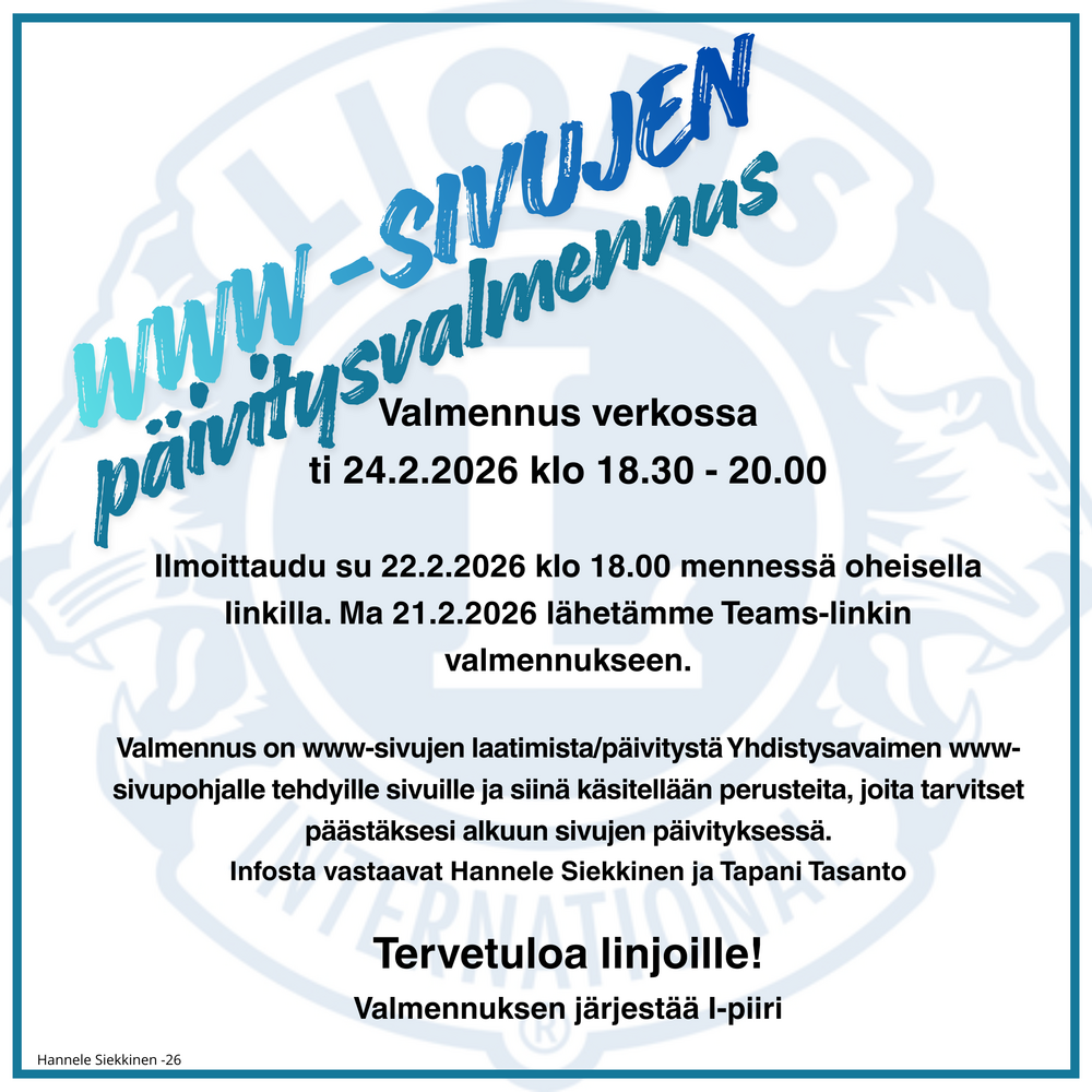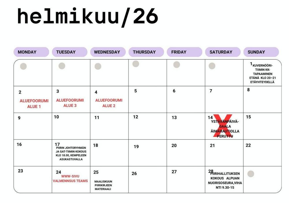 "Kiitän koko I-piirin puolesta vielä kerran ilmoittautumisestanne ystävänpäivän "kaalaan" 14.2.2026!