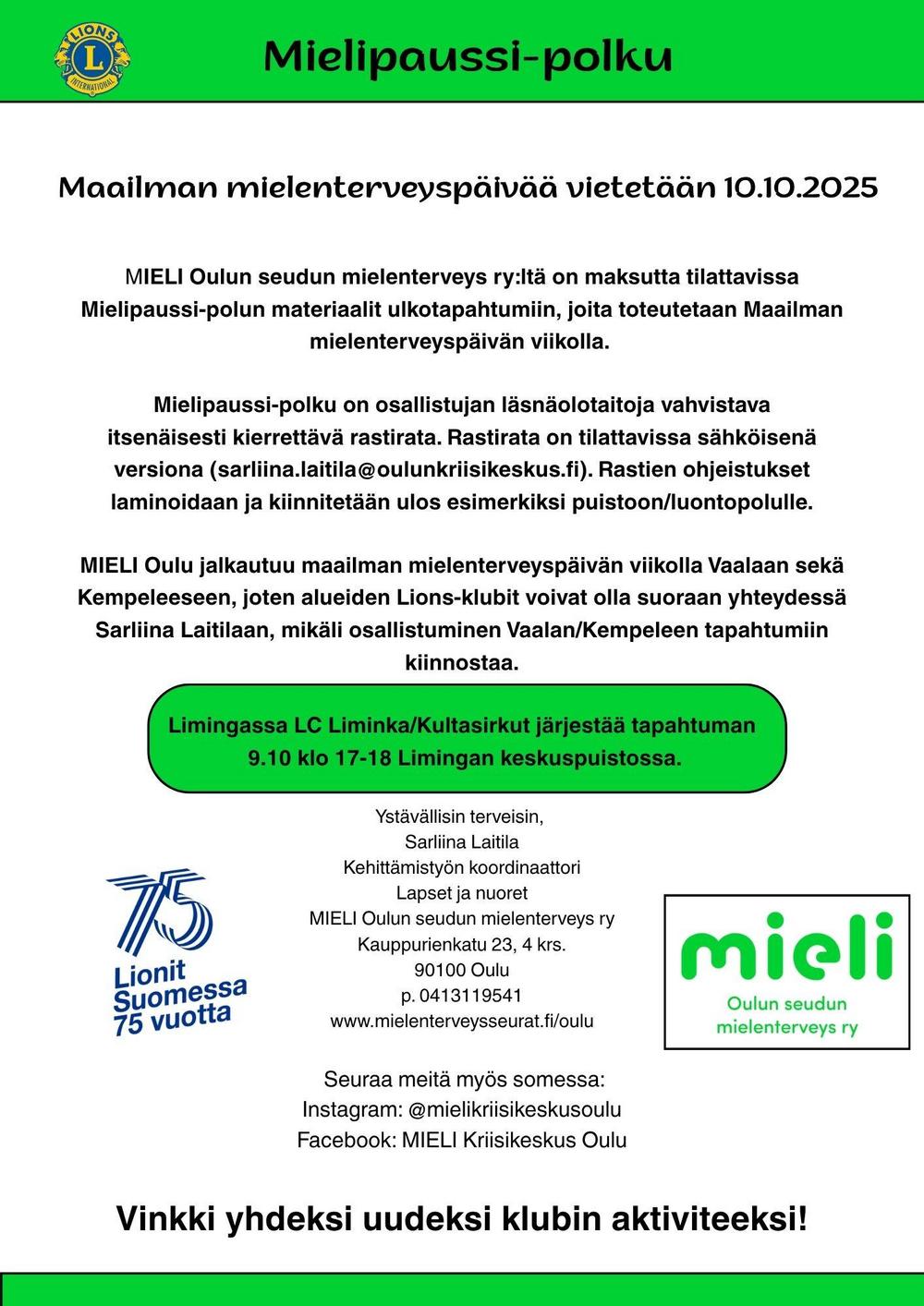 LC Oulu/ Oulujoen koordinoimat usean oululaisen klubin järjestämien Kuusisaari- ja Oulumpialaiset -tapahtumien tuotto on päätetty piirihallituksen toimesta ohjata lasten ja nuorten hyvinvointiin.…