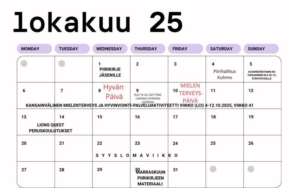 PIIRIKOKOUKSESTA PÄIVITETTYÄ MATERIAALIA! Piirikokouksessa hyväksytty - TOIMINTAKERTOMUS - VUOSIKELLO 25-26 - PÖYTÄKIRJA VUOSIKOKOUKSEEN LIITTYVÄ MATERIAALI: päivitetty 14.6.2025hs PIIRIKUVERNÖÖRIEN…