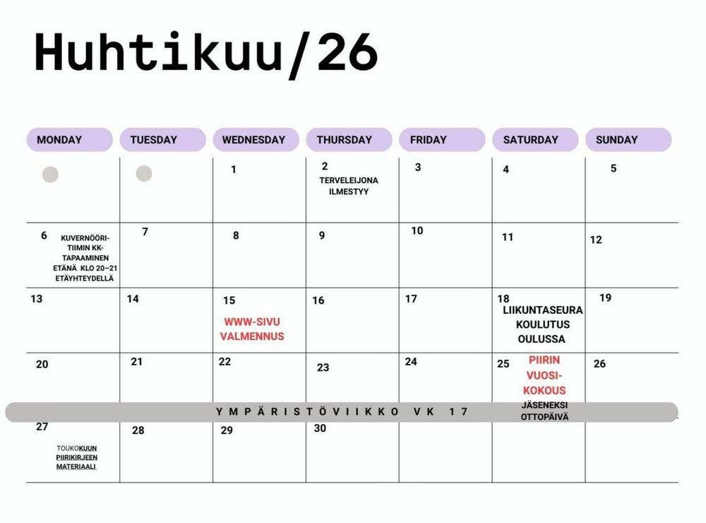 MAALIS-/HUHTI-/TOUKOKUUN KALENTERI