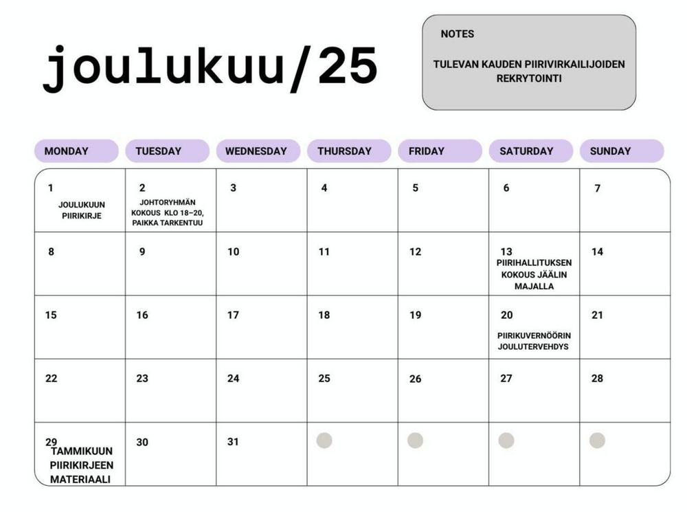 JOULU-TAMMI-HELMIKUUN KALENTERI