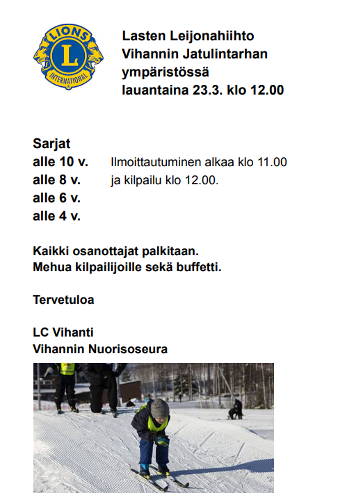 Lasten Leijonahiihto Vihannissa 23.3. klo 12.00