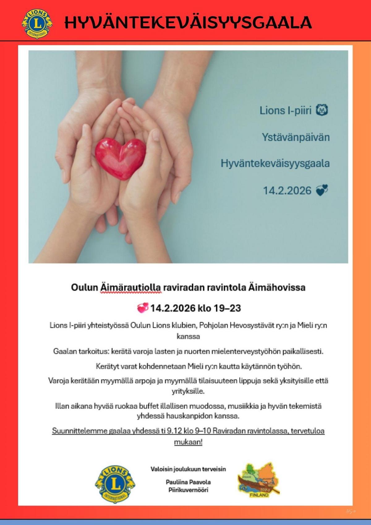 YSTÄVÄNPÄIVÄN HYVÄNTEVÄISYYSGAALA