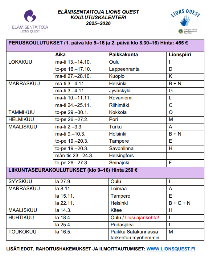 Lions Quest -liikuntaseurakoulutus: 18.4.2026